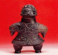 町内に数ある貝塚の中で、女川泉沢の貝塚からは縄文期の土器、石器その他多数のものが出土しました。中でも遮光器土器は、完全な原型のままで出土しました。